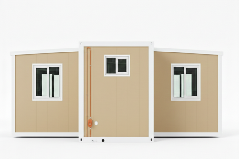| Overview | The AH-Series Design 06 is our signature "Butterfly" expandable model, featuring a high-contrast matte black galvanized steel frame and clean white minimalist panels. This unit is engineered for maximum portability and space efficiency, utilizing a precision folding mechanism that expands from a standard shipping footprint into a spacious residential layout. Available in 20ft, 30ft, and 40ft configurations. Includes a recessed central glass entry, high-performance insulation, and a fully finished "Plug & Play" interior. |