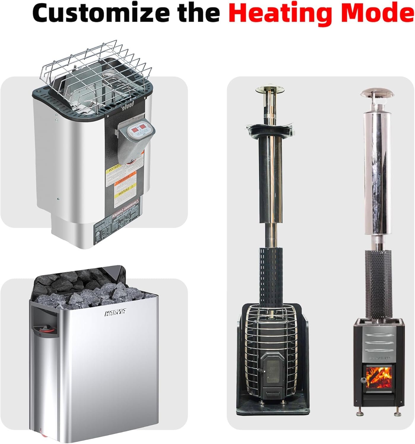Premium Components: Includes a 6.0kw Harvia Internal-Controlled Electric Heater (ETL Certified) and high-density Vulcanite Sauna Stones for authentic steam production. Customization Options: This unit is fully customizable. Choose between Canadian Red Cedar, Hemlock, or Finland Pine; upgrade with a Full Glass Back Wall, LED Mood Lighting, and Waterproof Asphalt Shingles. Pricing is based on final material and upgrade selections. |