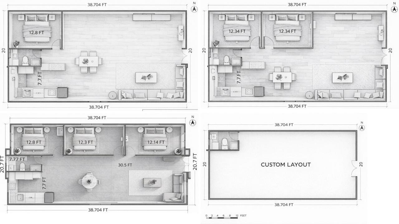 Internal Layout Customizable: Multi-Zone Living • Private Bedroom Area • Integrated Kitchen • Full Sanitary Bathroom.